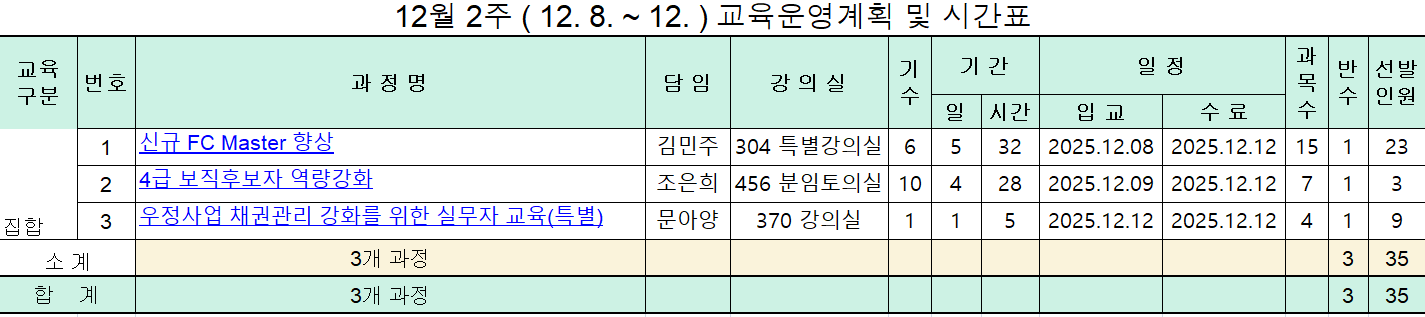 2025.12.8.(월)~12.12.(금) 교육시간표입니다.